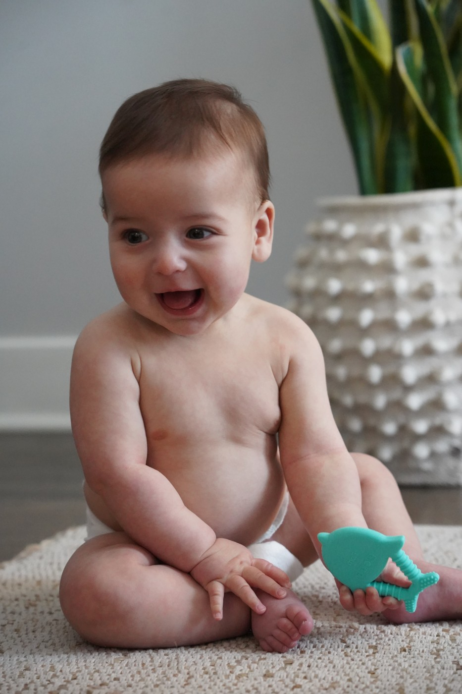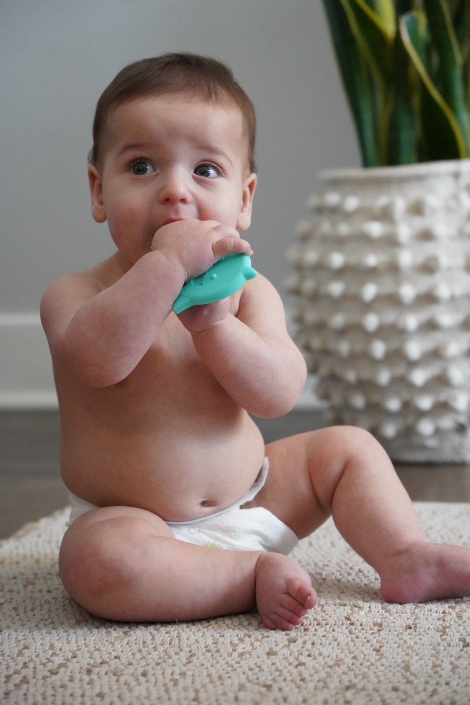 Set 2 inele dentitie, Melii, dinozaur + rechin Calmeaza gingiile bebelusului in timpul eruptiei dentare cu inelele de dentitie Melii realizate 100% din silicon alimentar. Designul multistrat mascheaza si calmeaza gingiile bebelusului in timp ce ii tine ocupati. Inelele de dentitie Melii sunt usoare, au diverse modele pentru a ajuta bebelusul sa se obisnuiasca cu diferite texturi, reducand astfel selectivitatea alimentara. Proiectate pentru mainile mici, sunt usor de prins pe toate laturile. Aceste inele de dentitie colorate au o suprafata moale texturata, perfecta pentru calmarea gingiilor si ameliorarea durerii provocate de eruptia dentara. Designul lor captivant in forma de dinozaur si rechin ofera atat confort, cat si divertisment pentru bebelusi, oferind o solutie sigura si durabila pentru disconfortul cauzat de eruptia dentara. Colectioneaza toate cele 5 modele dragute de animale. Cu un design prietenos pentru copii si culori distractive, vor face durerea sa treaca mai usor! CARACTERISTICI PRODUS Design vesel si prietenos 100% realizate din silicon alimentar: Fabricate din silicon 100% de grad alimentar, sigure pentru bebelusii si copiii mici care au inceput sa apara dintii, varsta 0+. Usor de tinut de bebelusi: Aceste inele de dentitie usoare, in forma de animale, sunt usor de prins pe toate laturile de mainile mici. Calmarea gingiilor dureroase ale bebelusilor: Jucariile de mestecat colorate ofera o suprafata texturata moale, proiectata pentru a masa gingiile si a ameliora durerea si disconfortul cauzat de aparitia dintilor. Ajuta la reducerea selectivitatii alimentare: Multi copii selectivi au dificultati in a manca anumite texturi. Inelele noastre de dentitie au diverse modele, caneluri si proeminente care ajuta bebelusul sa se obisnuiasca cu texturi noi si diferite in gura. Acest lucru poate reduce selectivitatea alimentara, deoarece inelele ajuta la desensibilizarea gurii bebelusului. Non-toxice: Fara substante chimice nocive- fara BPA, fara plumb, fara cadmiu, fara PVC si sunt 100% sigure pentru alimente. Utilizare in masina de spalat vase: Curatati temeinic cu sapun si apa calda sau pe raftul superior al masinii de spalat vase inainte de prima utilizare si dupa cum este necesar. Inspectati produsul inainte de fiecare utilizare si aruncati-l la primul semn de deteriorare sau slabiciune.
