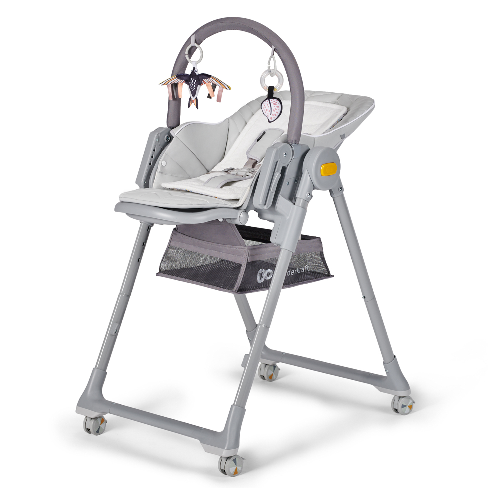 Scaun de masa Kinderkraft LASTREE, 2 in 1, transformabil, GREY stiati ca micutului ii place sa va urmareasca in activitatile zilnice din gospodarie? Faceti cunostinta cu scaunul de masa transformabil LASTREE GREY, care, datorita reglarii sale, va servi copilului de la nastere pana la varsta de 3 ani (sau 15 kg). LASTREE GREY indeplineste functia de sezlong inca din primele zile de viata, iar cand bebelusul invata sa stea singur, ilputeti transforma cu usurinta intr-un scaun de masa. Acest scaun il va incanta atat pe copil cat si pe dumneavoastra. Nu este doar practic ci are si un design modern. Culorile clasice imbinate cu modelul de mozaic modern fac scaunul de masa LASTREE GREY potrivit oricarui design de interior. Scaunul LASTREE GREY 2 in 1 indeplineste si functia de sezlong (in versiunea inalta), care poate fi folosit inca de la nastere. Are un sezut larg si moale, cu insertie si centuri in 5 puncte, care vor mentine copilul in siguranta in timpul odihnei si atunci cand se joaca. Datorita acestui fapt, copilasul isi va putea insoti parintii nu numai in timpul meselor comune, ci si in timpul treburilor casnice de zi cu zi. Pentru confortul copilului, LASTREE GREY ofera posibilitatea de reglare a spatarului pe 3 niveluri, inclusiv in pozitie culcata. Îl puteti ajusta la preferintele si la dispozitia actuala bebelusului. Pozitia culcata va fi perfecta pentru odihna, iar pozitia semi-culcata - pentru joaca, deoarece sezlongul are o arcada reglabila cu jucarii: o frunza de plus cu zornaitoare si o randunica de plus cu panglici colorate. sezlongul are si un suport pentru picioare reglabil pentru a oferi picioarelor mici un sprijin adecvat. Împreuna cu LASTREE GREY copilul va putea sa va insoteasca oricand si oriunde. Acest lucru este posibil si datorita rotilor silentioase cu care sunt finisate picioarele scaunului. Puteti muta cu usurinta scaunul dintr-o camera in alta. În plus, cosul pentru maruntisuri va permite sa scoateti rapid servetelul umed pentru a sterge manutele bebelusului. LASTREE GREY este un scaun de masa univiersal - se distinge nu numai prin designul sau frumos si insertia fata-verso pentru sezut, ci si prin posibilitatea de reglare a inaltimii scaunului de pana la 5 niveluri. Scaunul inalt foloseste si centuri in 5 puncte care pot fi ajustate pe 2 niveluri.. LASTREE GREY are un suport pentru picioare reglabil si unul suplimentar care va fi perfect pentru copiii mai mici. Ofera sprijin adecvat picioarelor in timp ce acesta mananca, ceea ce sprijina dezvoltarea corecta a copilului dar si a obiceiurilor corecte. Are de asemenea, o tava dubla, reglabila pe 3 distante, usor de detasat si de curatat. LASTREE GREY se distinge si prin sezutul moale, acoperit cu piele ecologica - datorita acestuia, pastrarea scaunului curat va fi foarte usoara. A cazut un pic de morcov pe husa? Sau poate bebelusul a varsat suc? Este de ajuns sa stergeti scaunul cu o carpa umeda. LASTREE GREY este un produs proiectat cu un design neobisnuit, modern, care face referire la culorile stralucitoare cu accente puternice. Pentru a fi mai usor de depozitat, puteti plia scaunul si il puteti pune in coltul camerei sau ascuns intr-un dulap. Tava poate fi detasata si atasata la picioarele scaunului - astfel ocupa si mai putin spatiu. Avantaje: Functionalitate: LASTREE GREY este un scaun-sezlong 2 in 1 – indeplineste functia de sezlong (pana la 9 kg) si scaun de masa (pana la 15 kg). De aceea, produsul poate fi folosit inca din primele saptamani de viata. sezlongul pentru sugari ii va permite copilului sa va insoteasca in orice moment din zi. La sezlong este atasata o arcada cu 2 jucarii agatate (o frunza de plus cu zornaitoare si o randunica de plus cu panglici colorate). Micutul va fi cu siguranta interesat de ele. Ca scaun de hranire, LASTREE GREY ofera un sprijin adecvat pentru picioare si faciliteaza adoptarea unei pozitii corecte la masa. Datorita acestui fapt, inca de la o varsta frageda, copilul isi va dezvolta obiceiuri corecte. LASTREE GREY este universal - puteti regla inaltimea scaunului de pana la 5 niveluri. Datorita acestui fapt, se va potrivi atat la mesele de bucatarie joase, cat si la cele inalte din camera de zi. Scaunul-sezlong are o constructie speciala, datorita careia poate fi folosit ca sezlong/scaun inalt dar si in modul cu picioare scurte. Tava reglabila, mare, poate fi indepartata de scaun pe 3 distante. În plus, protejeaza copilul, ca o bariera de siguranta. Datorita rotilor care pot fi atasate la picioarele scaunului, LASTREE GREY poate fi mutat cu usurinta dintr-un loc in altul. Micutul doreste sa manance in bucatarie, nu in sufragerie? Acum puteti muta scaunul fara probleme. si aceasta, fara sa va faceti grija ca veti zgaria podeaua. Stilul universal si combinatia clasica a culorilor fac ca LASTREE GREY sa fie perfect pentru orice interior. Siguranta: LASTREE GREY are o constructie solida din otel. Scaunul 2 in 1 este stabil si va servi ani de zile. Scaunul este echipat cu centuri de siguranta in 5 puncte care pot fi fixate pe 2 niveluri. Sunt usor de reglat si, in caz de nevoie, pot fi complet demontate. 4 roti au blocaje speciale care impiedica deplasarea spontana a scaunului. Rotile sunt silentioase si nu zgarie podeaua, de asemenea, pot fi demontate in intregime. Produsul respecta standardele pentru scaunele inalte EN 14988: 2017 + A1: 2020 si EN 12790: 2009 pentru sezlonguri, precum si EN 71 pentru jucarii. Confort: LASTREE GREY are un sezut larg si adanc acoperit cu piele ecologica moale. Husa murdara poate fi curata usor cu o carpa umeda. La sezut poate fi atasata o insertie dubla, placuta la atingere. Va face placuta odihna copilului. Spatarul poate fi reglat pe 3 niveluri, de asemenea, in pozitie culcata - datorita acestui fapt, bebelusul se poate culca si se poate juca confortabil cu jucariile atasate. LASTREE GREY are un suport pentru picioare reglabil, iar in functia de scaun poate fi montat un suport suplimentar pentru picioare (inclus in set). Suporturile pent