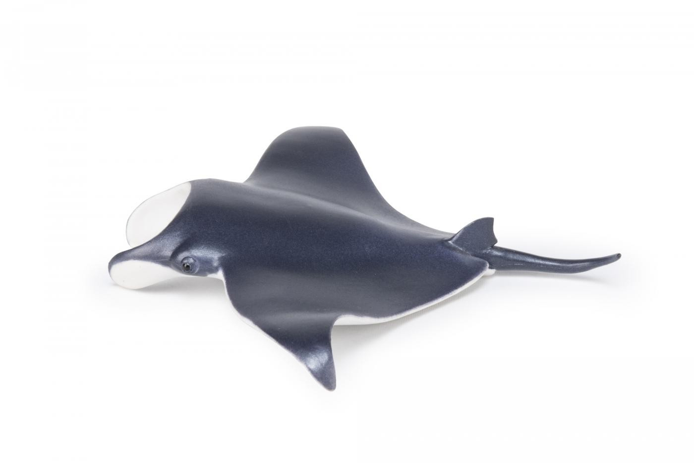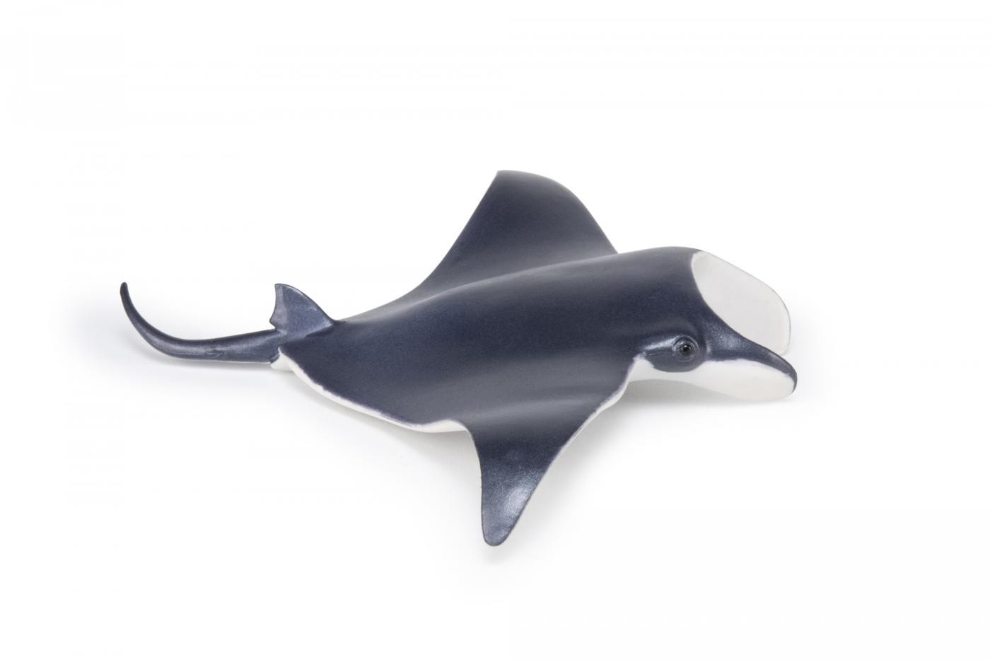 Scufundati-va cu balenele cu cocoasa, sariti in valuri alaturi de delfini sau deveniti un om-broasca capabil sa exploreze adancurile oceanului in cautarea unor exemplare magnifice precum pestele clovn. Diavolul de Mare poate ajunge pana la 9 m in diametru si poate cantari aproape 3 tone. Ceea ce caracterizeaza aceasta creatura planctivora docila si inofensiva sunt in mod natural cele doua aripioare mari sau „aripi”. Spatele sau negru contrasteaza cu burta alba, care contine cinci perechi de branhii. Are doua coarne deosebit de impresionante in partea din fata a capului, care i-au adus numele de „Diavolul Marii”. Scopul lor este de a conduce apa spre gura ei pentru a o filtra pentru a permite creaturii sa se hraneasca cu planctonul pe care il contine. Extrem de gratioasa, raza Manta traieste in grupuri de mai multi indivizi si uneori poate fi abordata de scafandri. Produsul are urmatoarele dimensiuni: 18 x 14 x 2.5cm si este recomandat copiilor cu varsta peste 3 ani. De mai bine de 20 de ani, Papo inoveaza constant si ii face pe copii din intreaga lume sa viseze cu o gama bogata de peste 600 de produse, reprezentand 12 lumi, animale si personaje. De la modelul original la serie, fiecare dintre figurinele Papo a fost conceputa si creata in Franta pentru a fi fabricata intr-o permanenta preocupare pentru calitate. Pictate manual, atentia la detalii este acum recunoscuta. Figurinele Papo se disting prin acuratete si realism, detaliile sunt de asa natura incat am putea crede ca se vor pune in miscare.