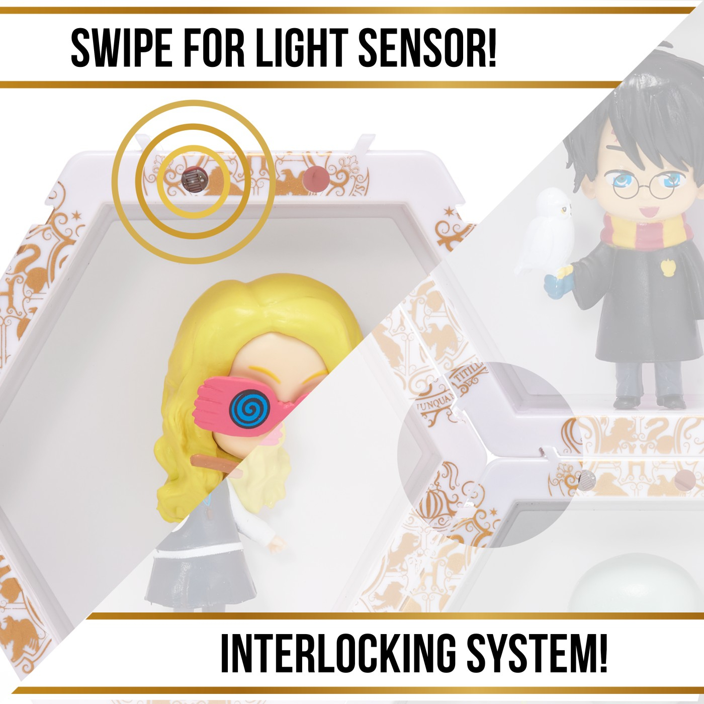 Fiecare personaj este situat in propriul POD in forma de hexagon cu lumini UV si senzor IR incorporat. Pur si simplu miscati mana peste senzor pentru a lumina WOW-ul! POD-ul! Misca-ti mana in fata POD-ului pentru a-l lumina si a dezvalui pictograme ascunse in spatele WOW!Pod-ului! Lumina se stinge automat dupa 30 de secunde. Conectati-le in cateva secunde! Colectia ta poate lua diferite forme si avea in fiecare zi, alt look! Limita e doar de imaginatia ta! Puteti chiar sa va scrieti numele sau initialele pentru a crea un afisaj care este fara indoiala si unic al dvs.! Colectionati si conectati personajele favorite printr-o colectie mai vasta de eroi WOW! PODS! Sunt disponibile personaje : Marvel, DC, Disney, Disney Frozen, Sonic, Jurassic World, Harry Potter, Minionii si altele. Acest pachet contine personajul Luna.
