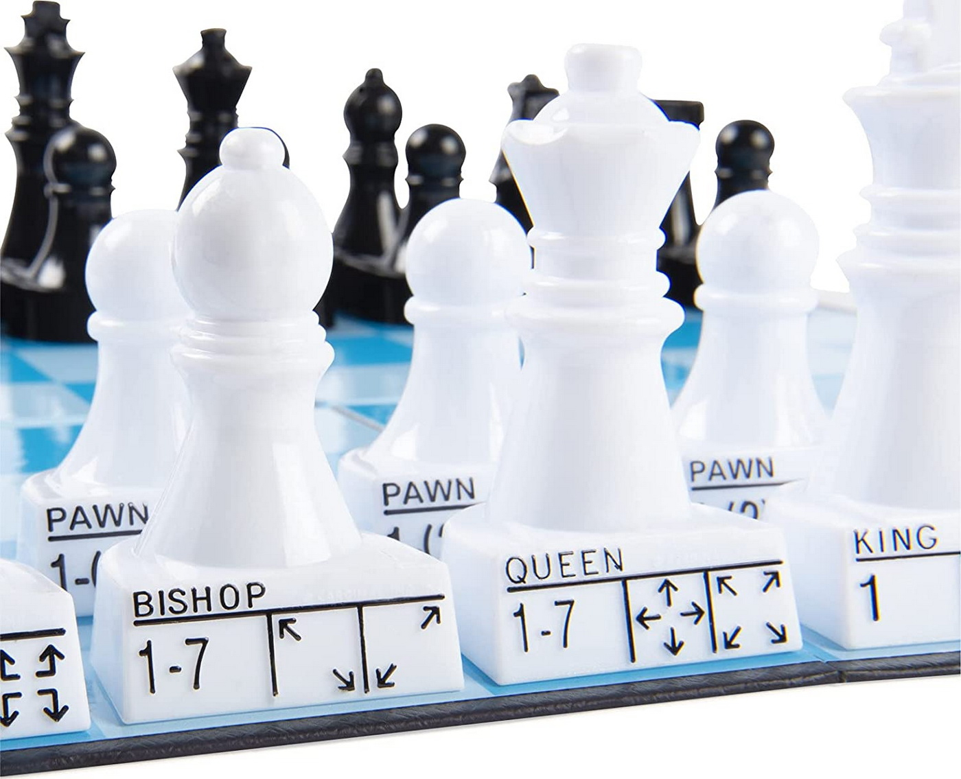 Învatarea jocului de sah este usoara cu piese marcate. Fiecare piesa include numele si directia in care se poate deplasa. Ideal pentru 2 jucatori! Recomandat pentru varsta de 6 ani si peste. Contine: Tabla de sah , 32 de piese de sah, instructiuni.