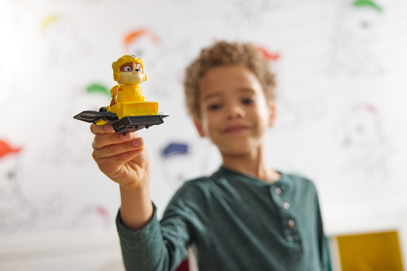 Zboara in actiune cu Action Pups figurina Patrula catelusilor si minunatul sau vehicul de salvare hoverboard. Cand este timpul pentru o misiune de salvare plina de actiune, prinde picioarele figurinei pe pozitie si extinde aripile hoverboard-ului, transformandu-l intr-un avion de jucarie captivant, inainte de a zbura intr-o misiune de salvare plina de adrenalina. Figurina are o inaltime de peste 5 cm si este echipat cu jacheta de zbor albastra si casca de pilot, la fel ca in serial. Pentru si mai multe moduri interesante de a te juca, cauta-i pe Marshall, Skye, Rubble, Rocky si Zuma, pentru a forma cea mai buna echipa de salvare. Jucariile pentru prescolari din Patrula catelusilor si jucariile de invatare pentru copii mici sunt cadouri pentru copiii care sunt fani ai serialului, incurajand jocul plin de imaginatie si imbunatatirea abilitatilor motorii fine. Retraieste momentele tale preferate din sezoanele Patrulii catelusilor, cum ar fi Mighty Pups si filmul Patrula catelusilor, apoi creeaza-ti propriile aventuri cu cateii din Patrula catelusilor si masinutele lor corespunzatoare (fiecare se vinde separat). Creste-ti entuziasmul cu seturile complete ale echipei Action Pups si Air Rescue, care includ vehicule din Patrula catelusilor, personaje de actiune si jucarii pentru copiii mici, pentru ore nesfarsite de aventuri cu catelusi, inspirate din serial. Acest set contine figurina Rubble.