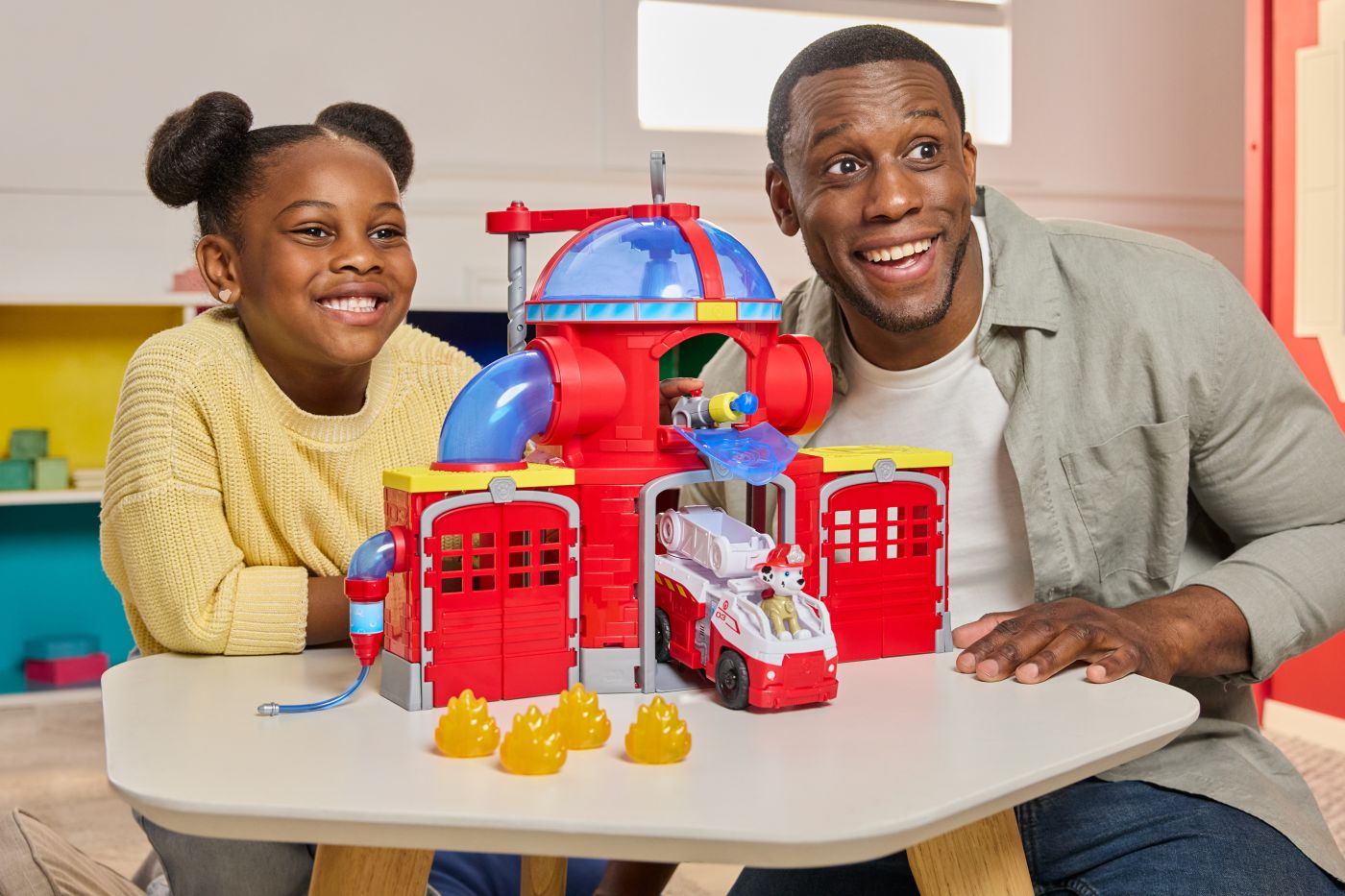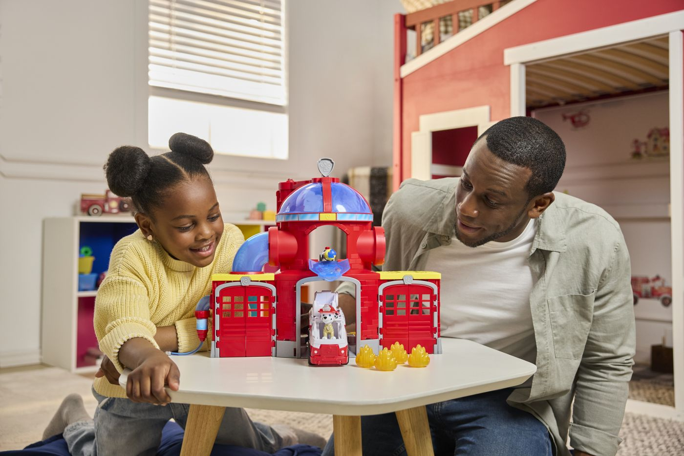 Alatura-te lui Marshall si mergi la salvare cu statia de pompieri Fire Rescue din Patrula Catelusilor. Aceasta lume de jocuri interactiva le permite copiilor cu varsta de 3 ani si peste sa experimenteze misiuni palpitante cu efecte sonore si luminoase. Ia-l pe Marshall in lift, pregateste vehiculul si trage proiectilele pentru a stinge incendiile. Este modalitatea perfecta de a intra in actiune si de a recrea aventurile eroice ale seriei. Cu Statia de Pompieri Fire Rescue, Patrula Catelusilor ofera copiilor o imersiune totala in lumea salvarii, cu actiune, coordonare si imaginatie. O jucarie completa pentru aventuri eroice alaturi de Marshall. Lume de joc interactiva cu efecte luminoase si sonore. Lift functional pentru lansarea misiunilor cu Marshall. Proiectile incluse pentru stingerea incendiilor in actiune. Include 1 vehicul si 1 figurina Marshall. Accesorii: 2 proiectile si 4 elemente suplimentare. Compatibil cu alte figurine si vehicule de pompieri. Necesita 2 baterii AAA (incluse). De la 3 ani+.