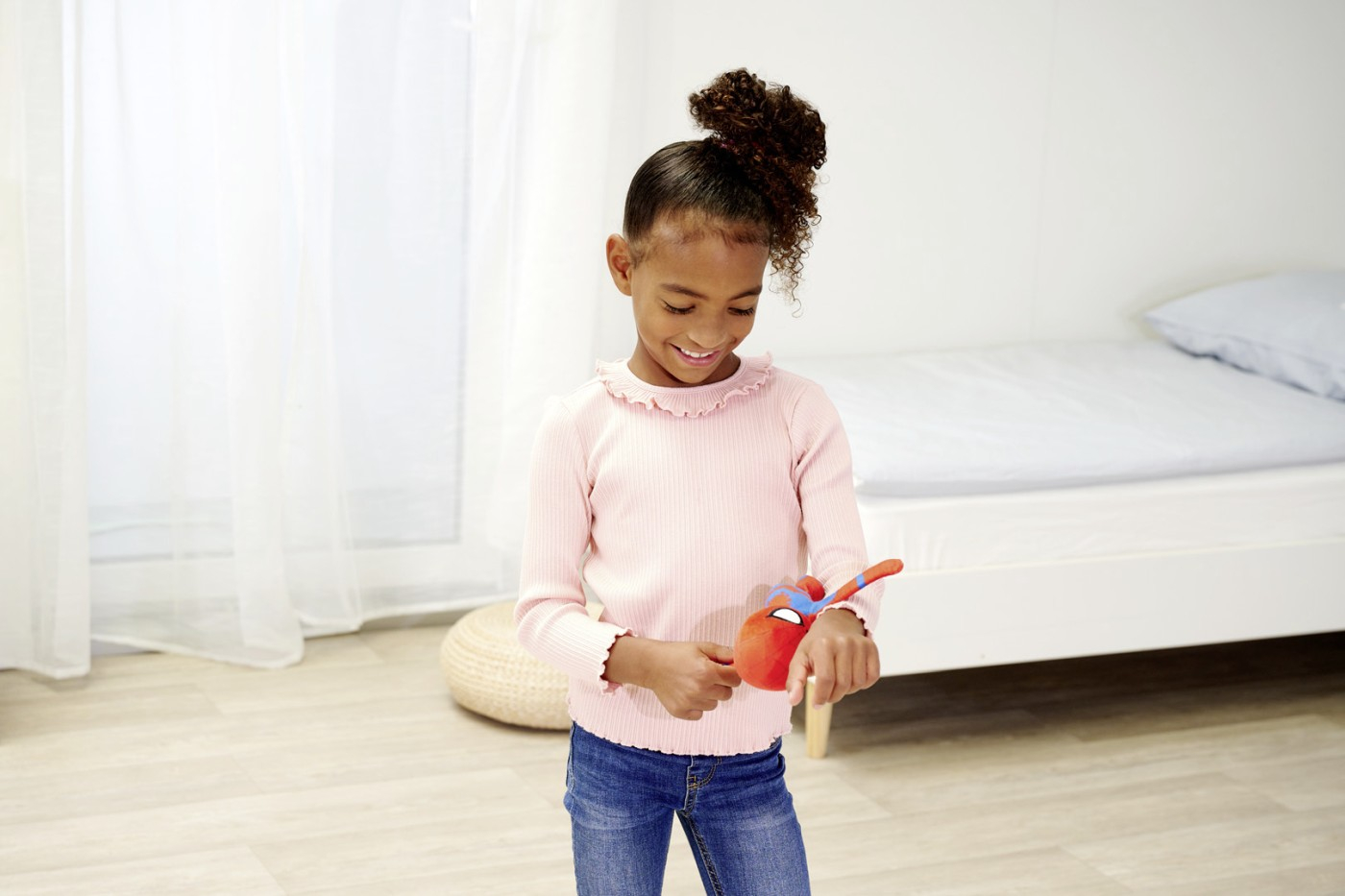 Cu aceasta bratara cool, paianjenul tau preferat „Spidey” este mereu alaturi de tine, pentru ca eroul MARVEL pur si simplu se lipeste de tine datorita bratelor sale indoite! Datorita curelei cu fixare, bratara de plus cu silueta Spider-Man poate fi atasata de brate, picioare, genti si altele dupa dorinta – indiferent de marimea copilului.