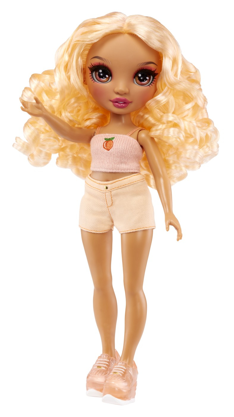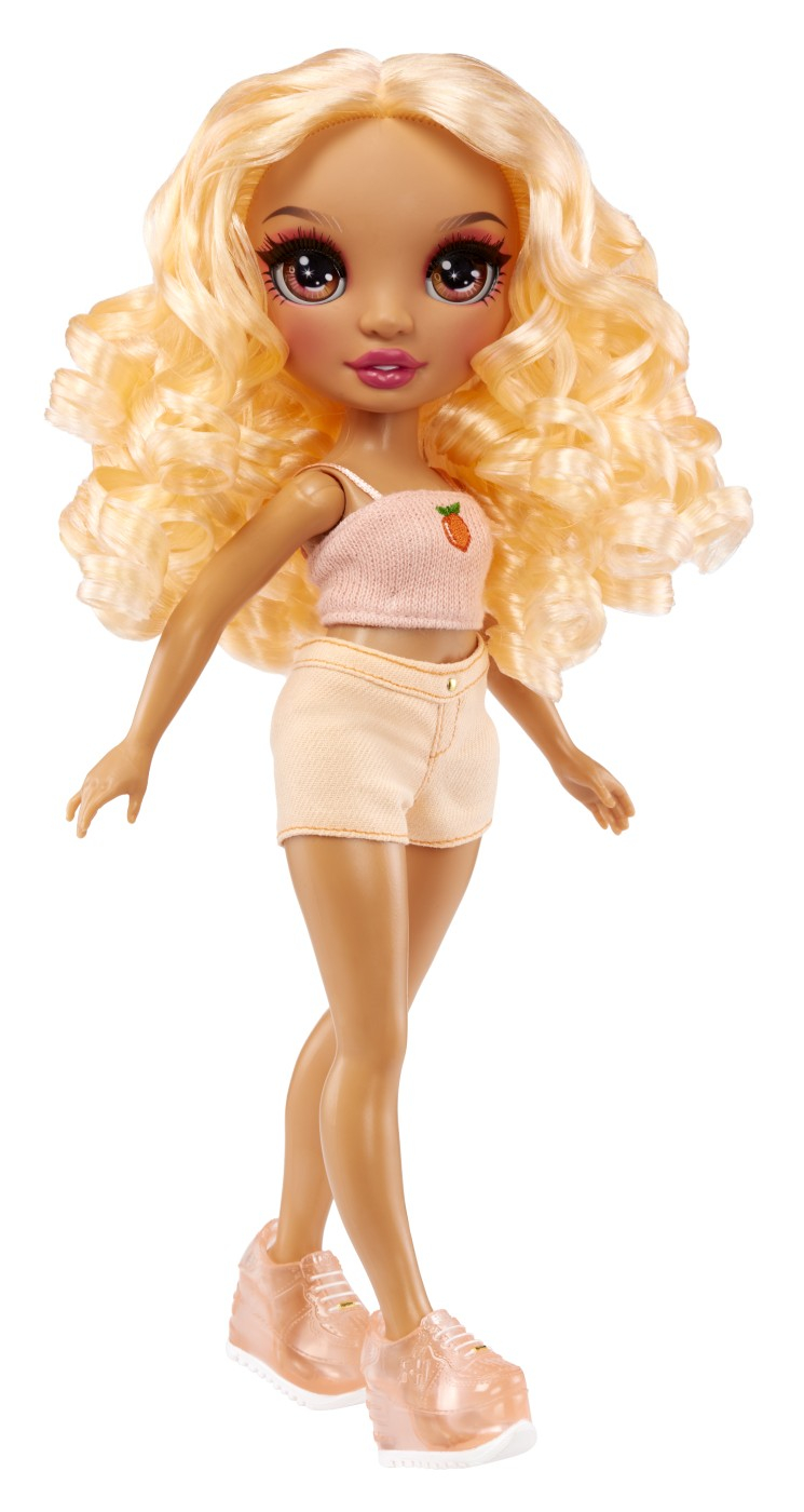 Rainbow High inspira copiii sa fie creativi. Curcubeul straluceste puternic, la fel si noile papusi Rainbow High! Descopera si tu papusile din gama Rainbow High OPP Fashion Doll! Georgia Bloom are trasaturi detaliate superbe la moda, par lung si bogat si o tinuta care ii exprima perfect personalitatea! Iubeste sa se exprime prin arta si moda si iubeste culoarea portocaliu deschis, credem ca tinuta ei arata perfect asta! Tinuta ei include: top de culoarea piersicii cu detalii, pantaloni scurti si tenisi portocalii care se potrivesc perfect cu machiajul ei splendid; Georgia este imbracata din cap pana in picioare in nuante ale culorii portocaliu. Papusa Georgia Bloom are un aspect unic, iar parul portocaliu ii completeaza perfect tinuta. Include: o papusa de moda superba cu tinuta completa. Colectioneaza-le pe toate si vei avea culorile curcubeului! Sunt 5 papusi pe care le poti adauga in colectia ta: Emi Vanda, Daria Roselyn, Gabriella Icely, Daphne Minton si Georgia Bloom. Joaca cu papusile Rainbow High contribuie la dezvoltarea imaginatiei copiilor; Cadoul perfect pentru copiii cu varsta de peste 6 ani!