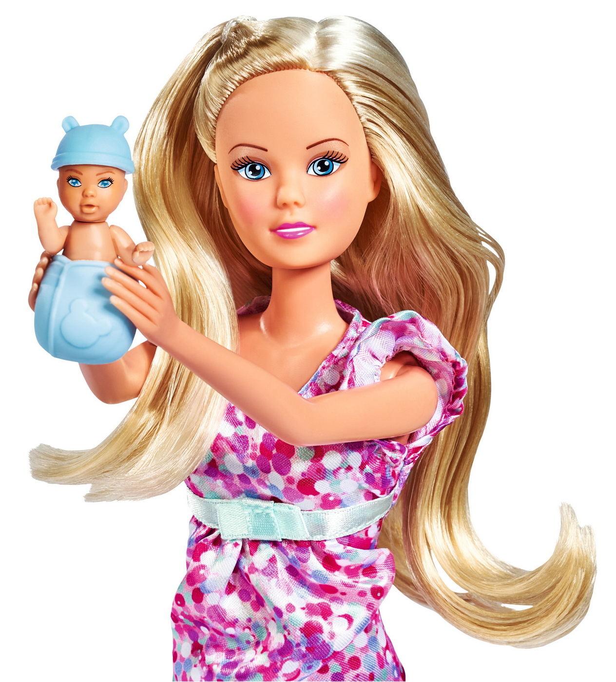 Steffi este insarcinata iar sexul bebelusului este o surpriza. Descopera daca va fi baietel, fetita sau chiar gemeni. Inaltime papausa 29 cm, setul include si 11 accesorii. Steffi LOVE este o adevarata papusa la moda. Îi plac hainele sic, coafurile la moda, sora ei mai mica Evi si, bineinteles, iubitul ei Kevin. Fetele isi pot coafa si imbraca papusa in tendintele actuale ale modei. Surpriza Steffi LOVE Baby este disponibila in trei rochii grozave. Selectia este aleatorie. Steffi este insarcinata si isi asteapta cu nerabdare copilul. Dar nimeni nu stie inca ce sex are bebelusul. Un baietel? O fetita? Sau poate chiar gemeni? Capac pentru burta care se poate deschide – pentru a afla numarul de copii si sexul, husa pentru burta poate fi indepartata cu usurinta si se poate naste un copil sau doi. Daca apoi va intoarceti stomacul, Steffi are un abdomen plat. Setul include un pachet surpriza grozav cu peste 11 accesorii potrivite pentru cei mici. Asa ca Steffi poate avea mare grija de bebelusii ei. Potrivit pentru copii de la 3 ani.