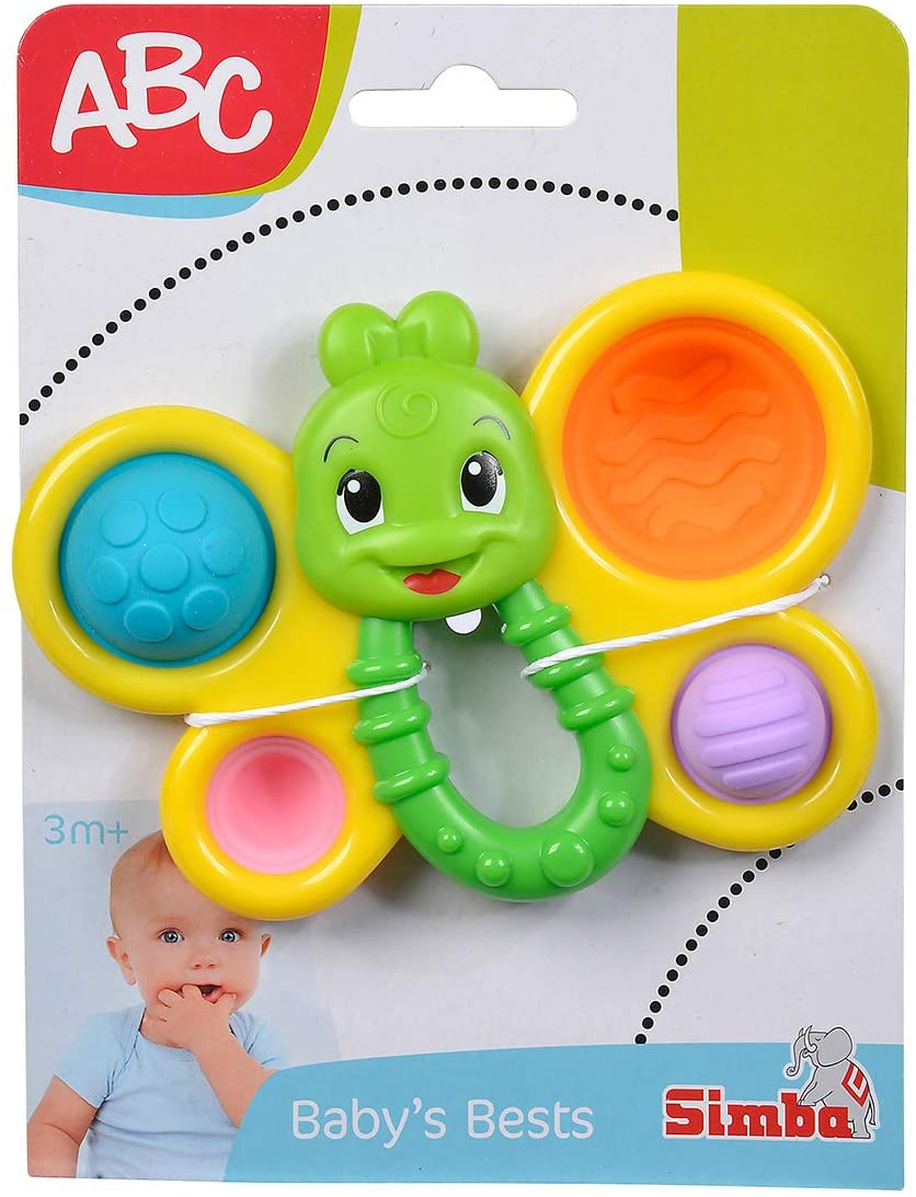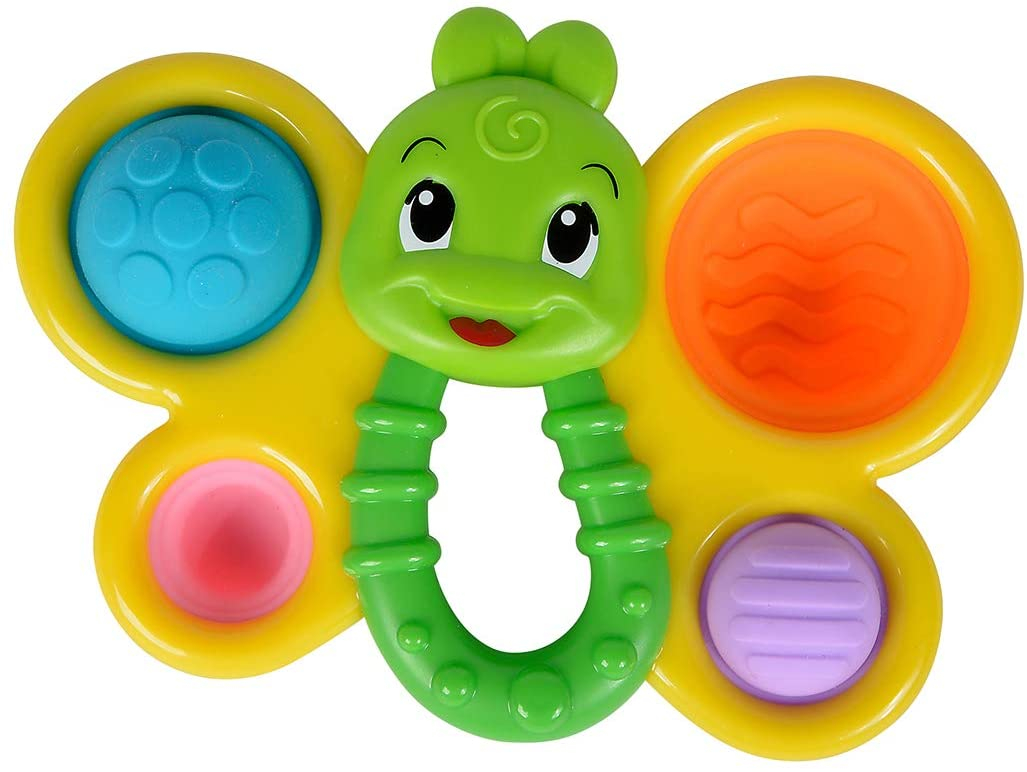 Jucarie bebe in forma de fluturas cu 4 bilute soft, colorate, lungime 14 cm.