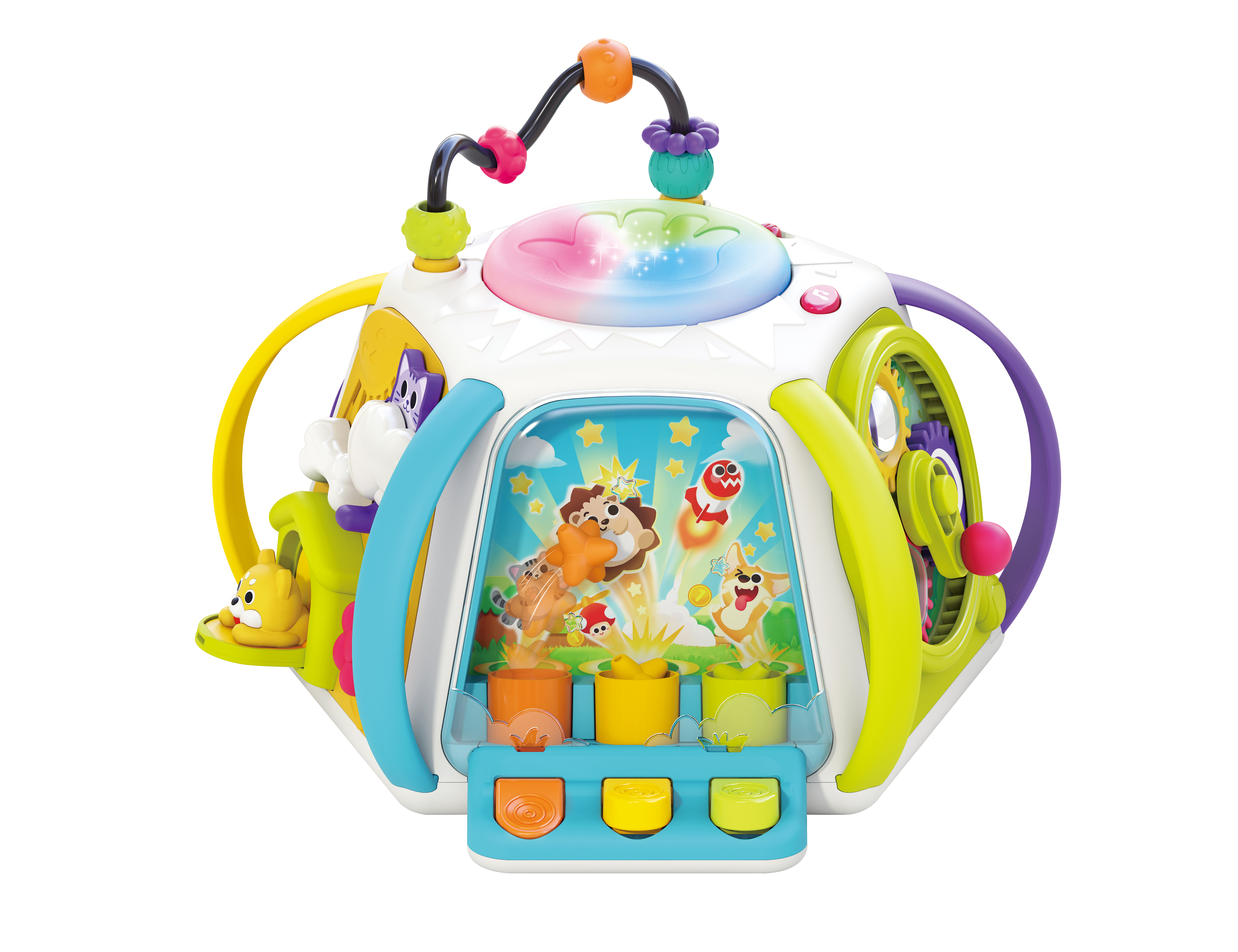 Cubul Montessori pentru invatare timpurie este o jucarie interactiva recomandata pentru copii cu varste intre 18 si 36 luni. Ofera 14 activitati de invatare timpurie si 6 laturi interactive, concepute pentru a stimula dezvoltarea abilitatilor motorii fine, jocul de rol si intelegerea relatiei cauza-efect.