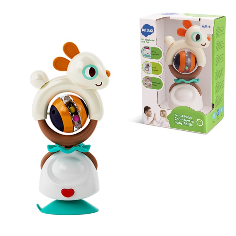 Jucarie zornaitoare in forma de iepuras ce se poate monta pe masa copilului, pe scaunul lui de masa, pe parchet si pe alte suprafete plane. Jucaria ajuta la dezvoltarea gandirii logice, a dexteritatii si a abilitatilor motorii.