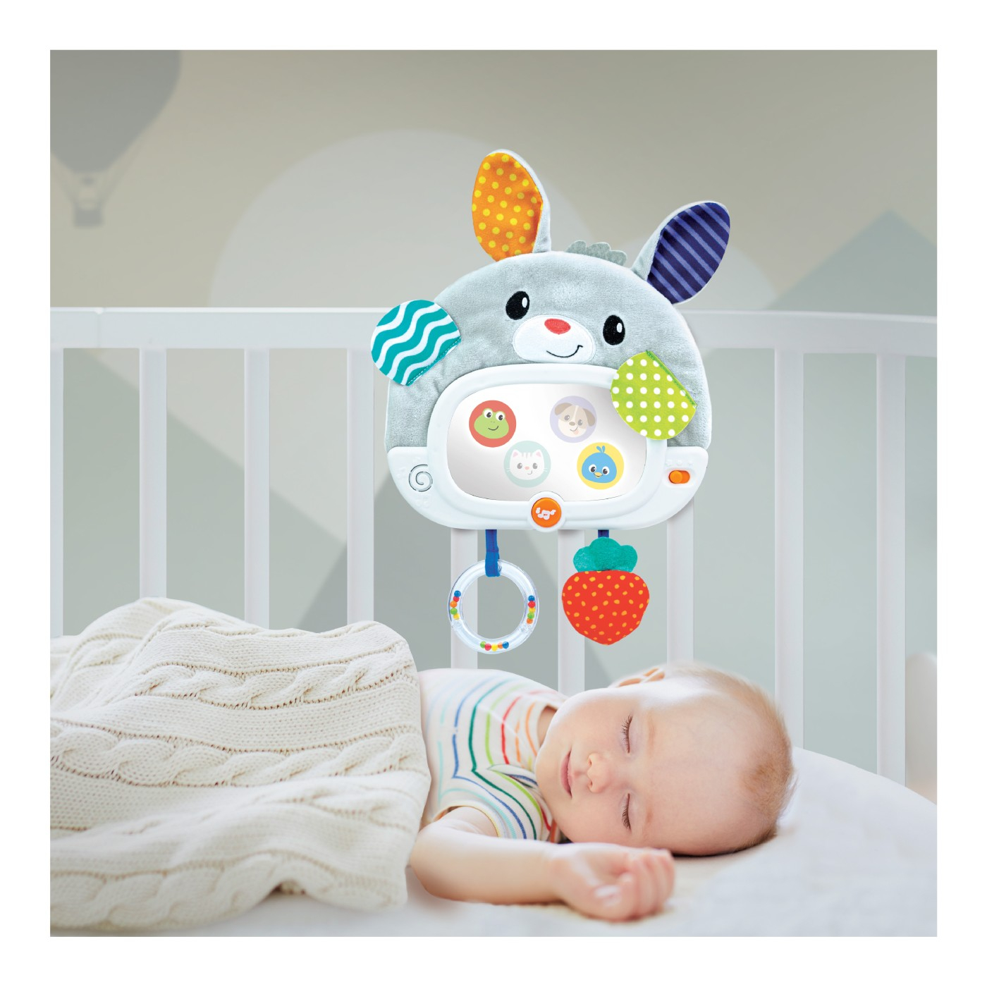 Jucaria Winfun Iepuras cu Activitati este perfecta pentru a insoti micutul in momentele de joaca si relaxare. Acest iepuras adorabil include o oglinda sigura pentru copii cu patru animalute si efecte luminoase care il vor fascina pe cel mic. Cu doua moduri de joaca, "Zi" si "Noapte", jucaria ofera melodii vesele si sunete amuzante pe timpul de zi si melodii linistitoare si sunete din natura pentru un somn calm. Copilul poate trage de inelul de zornait sau de butonul pentru melodii pentru a activa sunetele si efectele luminoase. Datorita posibilitatii de a-l atasa la patut sau la carucior, acest iepuras devine un companion ideal atat pentru joaca, cat si pentru momentele de relaxare.