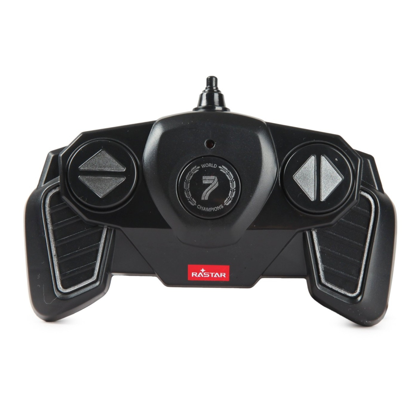 Copilul dumneavoastra se poate juca in voie cu masina cu telecomanda Mercedes AMG F1 W11 EQ Performance, scara 1 la 18, oferita de brandul international Rastar. Nicio cursa nu este imposibil de castigat cu acesta masinuta, replica oficiala cu licenta a modelului original, construita cu mare atentie la detalii. Masinuta are proportiile ideale pentru momente pline de distractie si amuzament, avand dimensiunile in centimetri dupa cum urmeaza : 25.5*11*6.7 .Masinuta functioneaza pe frecventa de 2.4G.Alimentarea se face astfel : pentru masinuta sunt necesare 4 baterii tip AA , iar pentru telecomanda 2 tip AA.Masinuta se poate deplasa in toate directiile : inainte, inapoi, stanga sau dreapta. Masina cu telecomanda Mercedes AMG F1 W11 EQ Performance, scara 1 la 18, poate rula cu o viteza aproximativa de 10km/h, are tractiune 2WD, anvelope de cauciuc, posibilitate de reglaj a directiei direct pe sasiu si o raza de actiune a telecomenzii de circa 20 de metri.