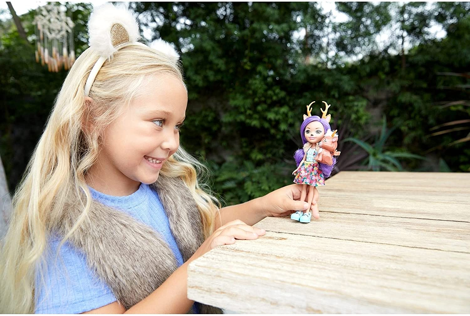 Lasati aceste papusi adorabile si prietenii lor animalute sa va incante. Papusile Enchantimals ™ sunt personaje care impartasesc o legatura speciala cu prietenii lor animalute - sunt mereu impreuna si arata la fel! Alegeti dintre papusile Enchantimals ™ si prietenii lor: un iepuras, o vulpe, un sconcs, un paun, o oaie si o caprioara. Fiecare papusa poarta o tinua si pantofi in culori stralucitoare, printuri florale. Fiecare se vinde separat, in functie de disponibilitate. Culorile si decoratiunile pot varia. Acest set contine personajul Danessa Dear si figurina Sprint.