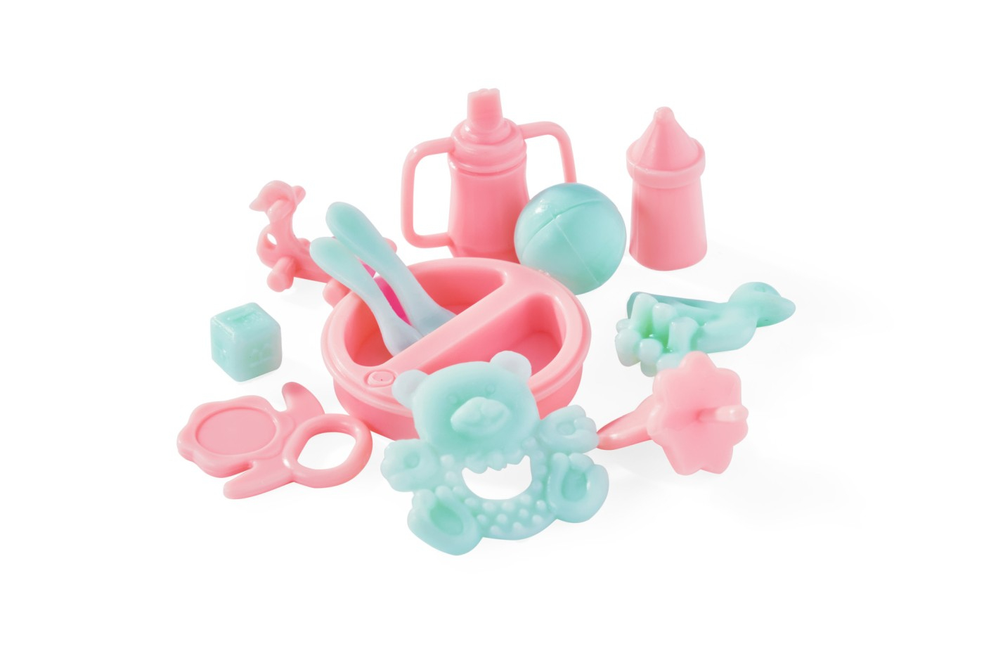 Steffi pleaca la plimbare cu bebelusul ei si cu masinuta premegator a acestuia. Pe langa papusa fashion de 29 cm, sunt incluse 12 accesorii, inclusiv o geanta de mana Steffi roz, si diverse accesorii pentru bebelus.