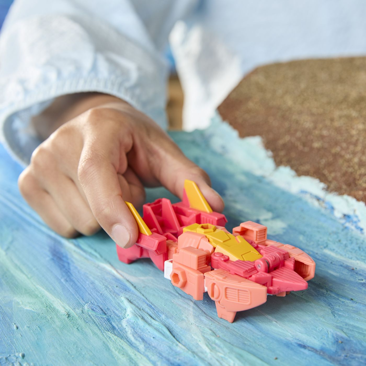 Transformers CYBERWORLD robot convertibil. In Transformers CYBERWORLD, copiii decid ce se intampla – si totul incepe cu jucarii minunate precum figurinele Cyber Changers. Aceasta jucarie Transformers de 10 cm se transforma din modul robot in modul alternativ si este suficient de simpla pentru copiii cu varsta de 6 ani si peste. Ofera copiilor un plus de inspiratie pentru povestiri cu jucariile CYBERWORLD suplimentare (fiecare vanduta separat, in functie de disponibilitate) si descopera personaje unice, moduri alternative, medii si multe altele. Fanii obiectelor de colectie Transformers, precum si noii veniti, vor adora sa descopere aceasta abordare a universului Transformers, unde singura constanta este schimbarea. Acest pachet contine personajul Elita 1.